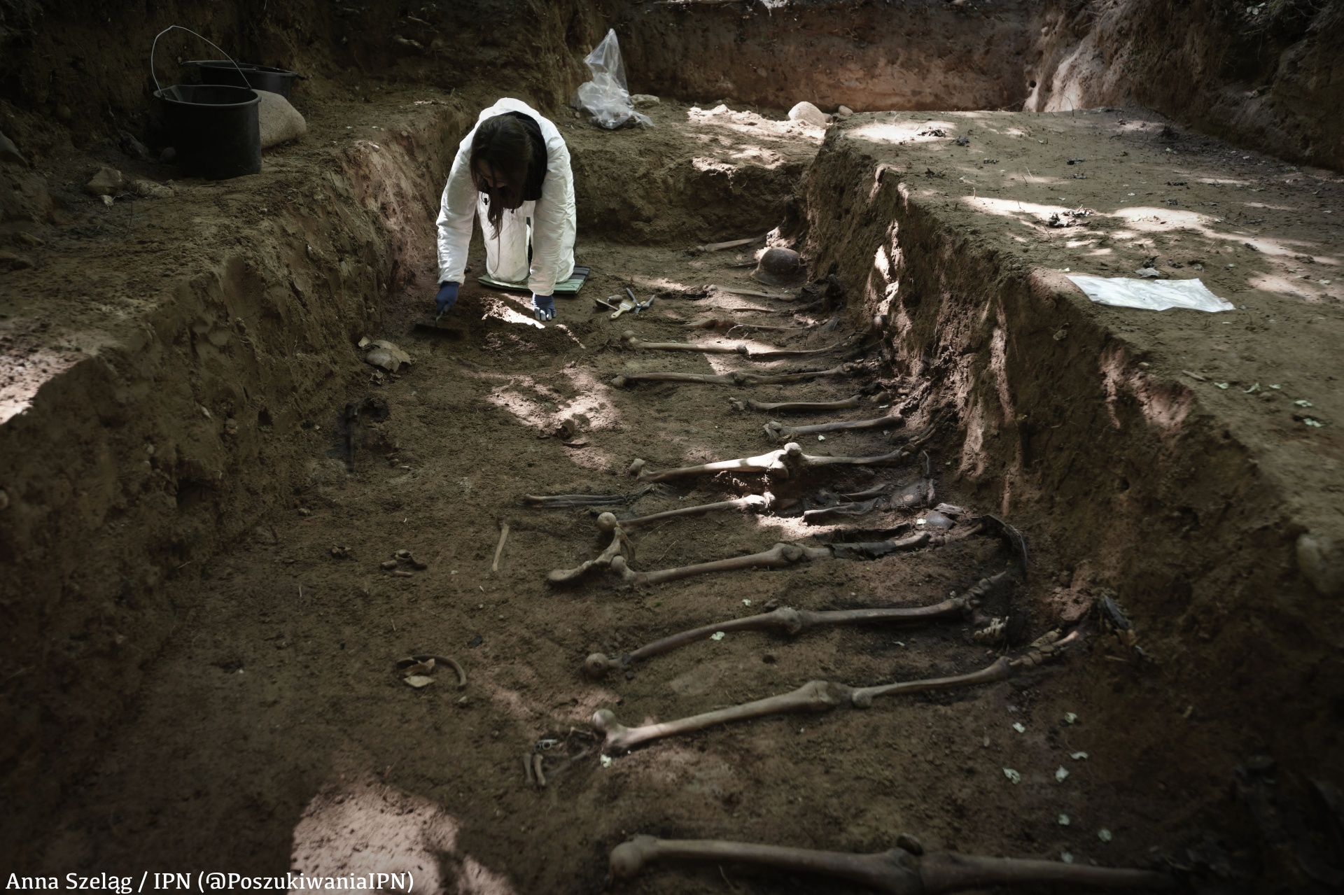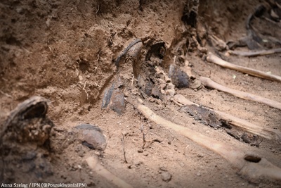 W październiku 2023 r. zespół Biura Poszukiwań i Identyfikacji IPN przeprowadził drugi etap prac poszukiwawczych ujawniając zbiorowy grób, a w nim częściowo zniszczone szczątki polskich żołnierzy. Tylko jeden spośród dziewięciu odkrytych szkieletów pozostał w stanie nienaruszonym. Prace ekshumacyjne w 1979 r. były przeprowadzone przy użyciu koparki, co spowodowało zniszczenie grobu polskich żołnierzy oraz pozostawienie części szkieletów w miejscu pierwotnej mogiły.