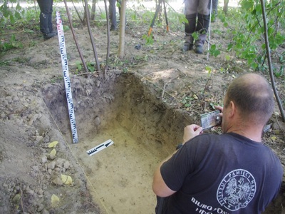 W dniach 17 – 20 września 2024 r. zespół pracowników Biura Poszukiwań i Identyfikacji IPN przeprowadził badania terenowe na obszarze należącym dawniej do wsi Dębniaki (obecnie jest to teren w granicach administracyjnych Wilna). Prace przeprowadzone zostały na terenie, który wskazała pani Krystyna Sobotkiewicz (z domu Warłamówna) jako miejsce pochówku polskiego ułana, który zginął we wrześniu 1939 r. Zapamiętała, że niedługo po 17.09.1939 r., w niedużej odległości od jej rodzinnego gospodarstwa, ułani polscy stoczyli bój z sowietami. Polacy przegrali potyczkę. Trzech z nich dobiegło do domu państwa Warłamów przez lasek. Zdjęli mundury i założyli odzież cywilną, którą otrzymali od gospodarza a konie puścili wolno. Żołnierze przynieśli ze sobą towarzysza broni, który, gdy dotarli do Dębniaków, już nie żył. Został pochowany w lasku, nieopodal domu. W miejscu pochówku, które wskazała pani Krystyna, ojciec posadził brzózkę. O drzewo dbała cała rodzina. Wokół rosły również inne drzewa – sosny, świerki. Wspomnianą brzozą rodzina pani Krystyny opiekowała się do czasu, gdy się stamtąd wyprowadzono (około 1980 r.). Wówczas dom został zburzony. Z lasu zaś korzystali okoliczni mieszkańcy. Wiele drzew, w tym wspominana brzoza zostało wyciętych. W wyniku przeprowadzonej kwerendy i analizy archiwalnych materiałów kartograficznych (przedwojenne mapy, zdjęcie lotnicze z 1944 r.) ustalono obszar prac. Wykonano 749 sondaży wiertniczych oraz założono sześć wykopów sondażowych w miejscach, w których wystąpiły zakłócenia gruntu. Grobu nie odnaleziono. Prace będą kontynuowane w kolejnym roku.