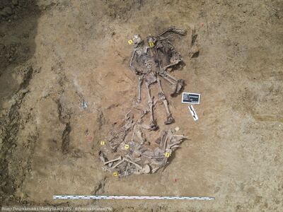 Na podstawie wstępnych oględzin można stwierdzić, że odnalezione szczątki należały do osób dojrzałych, przy czym wiek najstarszych z nich oscylował w przedziale 50-70 lat. Pewna ilość ujawnionych kości czaszek składała się z licznych fragmentów o ostrych brzegach lub wykazywała potencjalne szczeliny złamań w zakresie których mogło dojść do urazu lub przestrzału. Ponadto, na kilku fragmentach zlokalizowano otwory wlotowe o charakterystycznych cechach postrzałowych z broni małokalibrowej. Jednakże, w celu weryfikacji oraz potwierdzenia obrażeń, wymagane są dalsze badania, w tym rekonstrukcja kości.