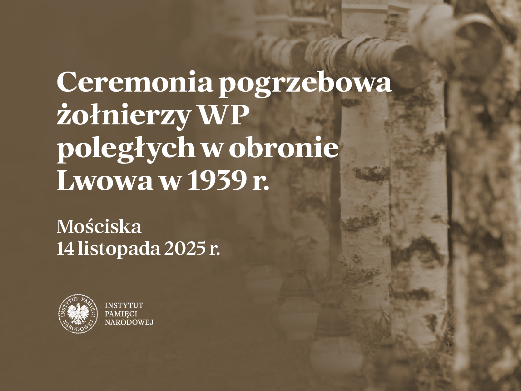 W piątek, 14 listopada 2025 r., w Mościskach na Ukrainie w obwodzie lwowskim odbędzie się ceremonia pogrzebowa żołnierzy Wojska Polskiego, poległych w obronie Ojczyzny przed niemieckim najeźdźcą w rejonie Lwowa we wrześniu 1939 r. Uroczystość rozpocznie się o godz. 12.00 czasu lokalnego (godz. 11.00 czasu polskiego) Mszą świętą w kościele pw. Narodzenia św. Jana Chrzciciela (ul. Iwana Franki 1). Ceremonia pogrzebowa odbędzie się na cmentarzu rzymskokatolickim w Mościskach (ul. Halicka).