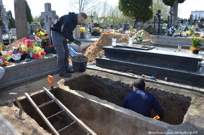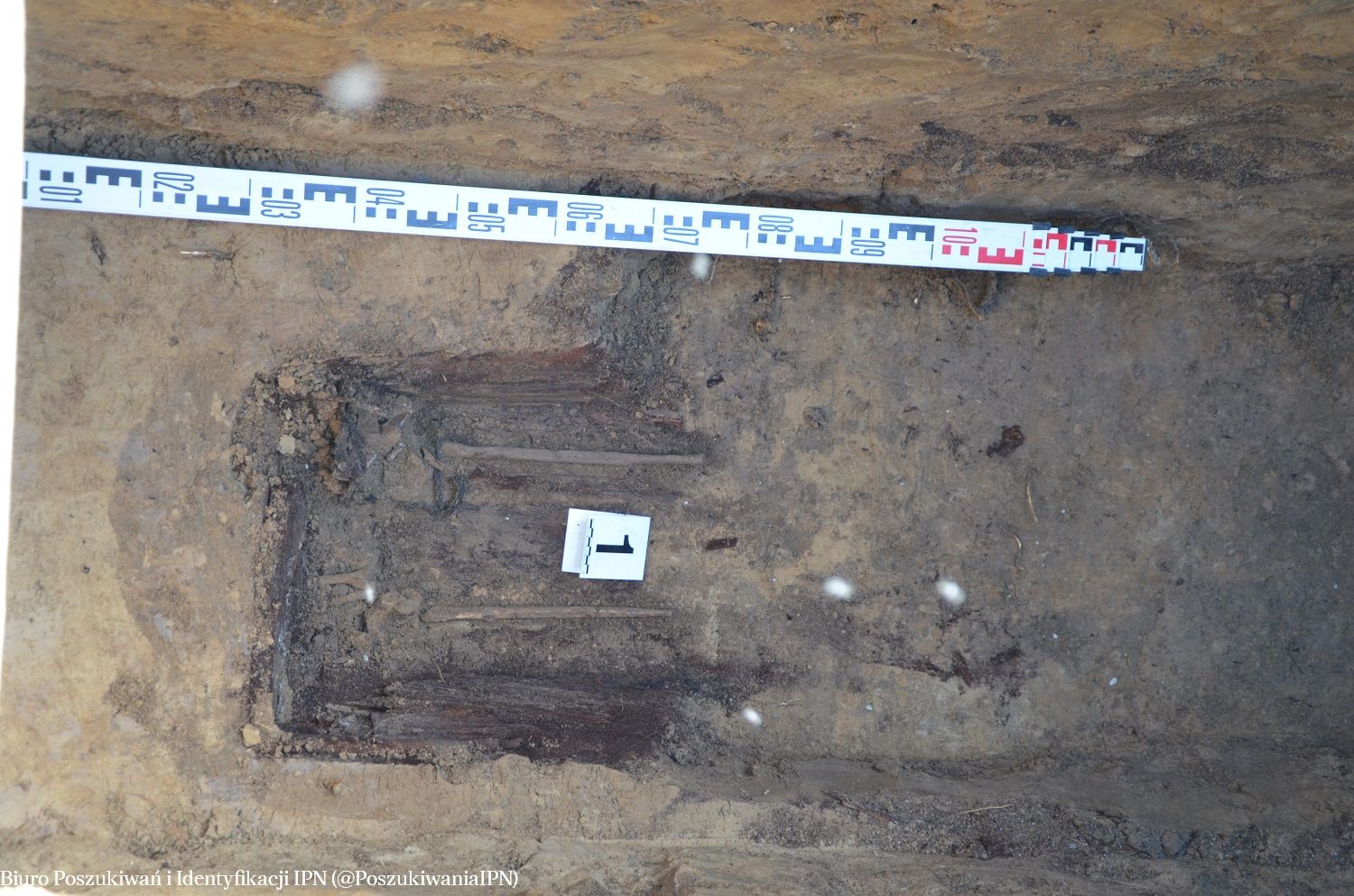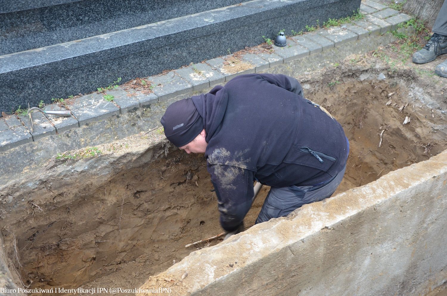 W kolejnych dniach przebadano trzy sąsiadujące ze sobą groby. W pierwszym z nich, po podjęciu szczątków osoby pochowanej w latach 70. XX w., ujawniono pozostałość wkopu sięgającego do głębokości 2, 20 m. Nie odnaleziono jednak szczątków ludzkich. W kolejnych jamach grobowych, pod wtórnymi warstwami pochówków, odnaleziono pozostałości szczątków dwóch osób, pochowanych przypuszczalnie w drewnianych skrzyniach lub trumnach. Szczątki zostały najprawdopodobniej wyekshumowane w latach 60. XX w., podczas pogłębiania grobów pod wtórne pochówki. Wiele wskazuje na to, że zostały one przeniesione w inne, nieoznaczone miejsce na cmentarzu.