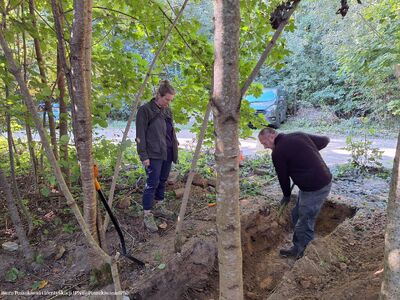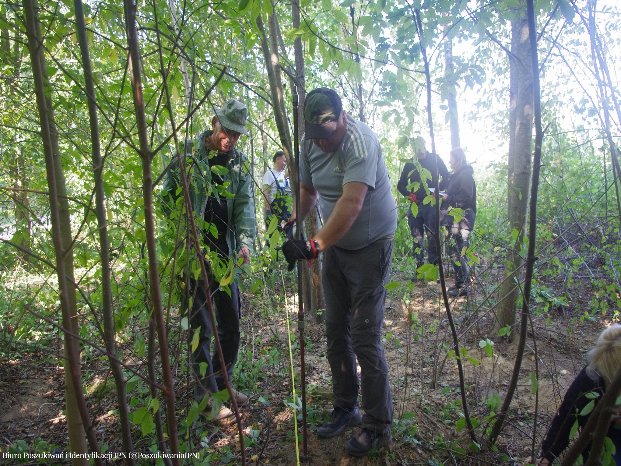 Zespół pracowników Wydziału Kresowego Biura Poszukiwań i Identyfikacji IPN w czasie pobytu na Litwie we wrześniu 2024 r. przeprowadził badania terenowe na obszarze należącym do dawniej wsi Dębniaki (obecnie leży w granicach administracyjnych Wilna). Prace poszukiwawcze przeprowadzone zostały na terenie, który wskazała pani Krystyna Sobotkiewicz (z domu Warłamówna) jako miejsce pochówku polskiego ułana, który zginął we wrześniu 1939 r. Zapamiętała, że niedługo po 17.09.1939 r., w niedużej odległości od jej rodzinnego gospodarstwa, ułani polscy stoczyli bój z sowietami. Polacy przegrali potyczkę. Trzech z nich dobiegło do domu państwa Warłamów przez lasek. Zdjęli mundury i założyli odzież cywilną, którą otrzymali od gospodarza, a konie puścili wolno. Żołnierze przynieśli ze sobą towarzysza broni, który, gdy dotarli do Dębniaków, już nie żył. Został pochowany w lasku, nieopodal domu. W miejscu pochówku, które wskazała pani Krystyna, ojciec posadził brzózkę. O drzewo dbała cała rodzina. Wokół rosły również inne drzewa – sosny, świerki. Wspomnianą brzozą rodzina pani Krystyny opiekowała się do czasu, gdy się stamtąd wyprowadzono (około 1980 r.). Wówczas dom został zburzony. Z lasu zaś korzystali okoliczni mieszkańcy. Wiele drzew, w tym wspominana brzoza, zostało wyciętych. W wyniku przeprowadzonej kwerendy i analizy archiwalnych materiałów kartograficznych (przedwojenne mapy, zdjęcia lotnicze z 1944 r.) ustalono obszar prac poszukiwawczych. W ich efekcie wykonano 749 sondaży wiertniczych oraz założono sześć wykopów sondażowych w miejscach, w których wystąpiły zakłócenia gruntu. Grobu nie odnaleziono.